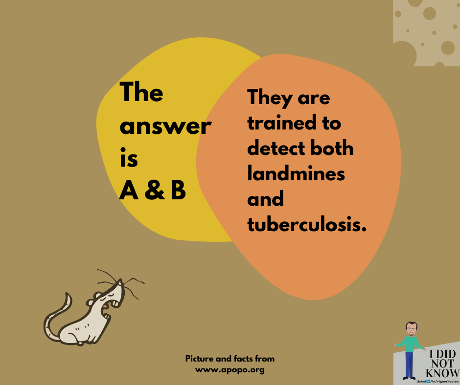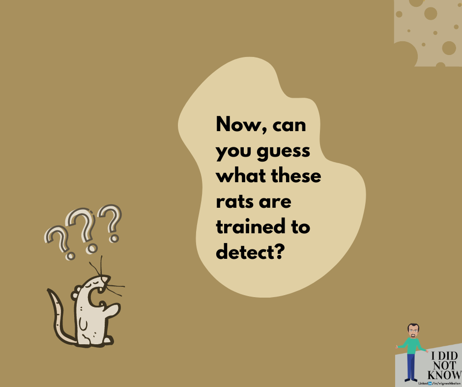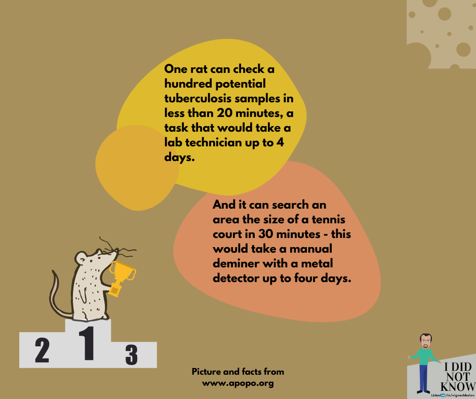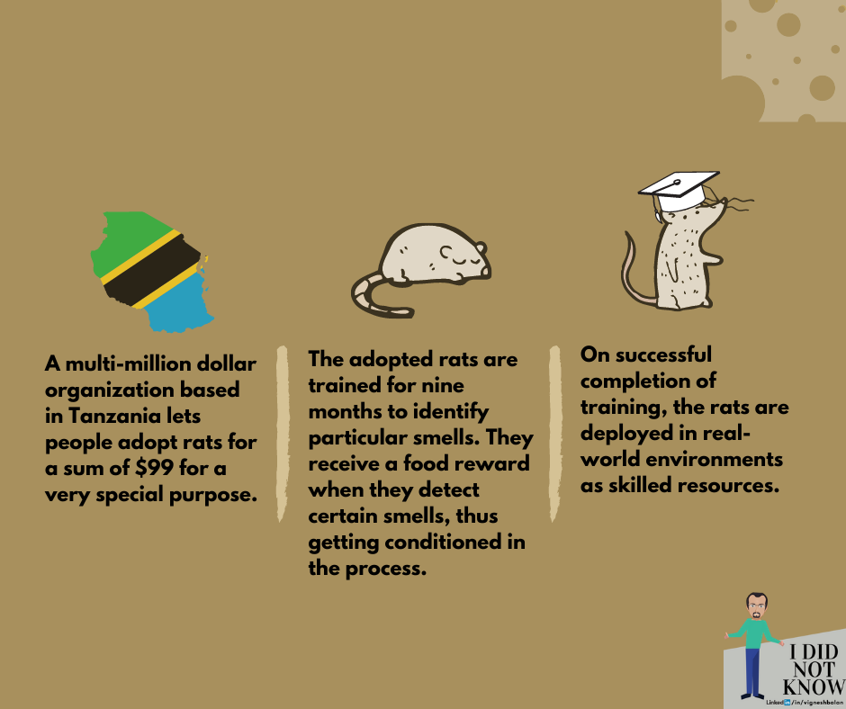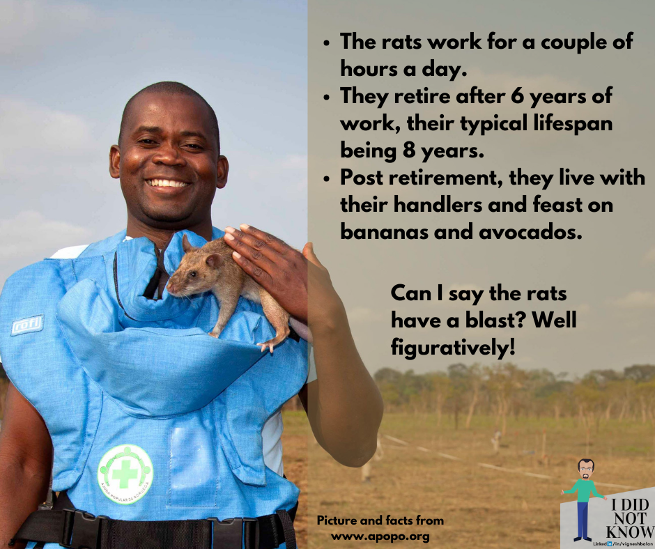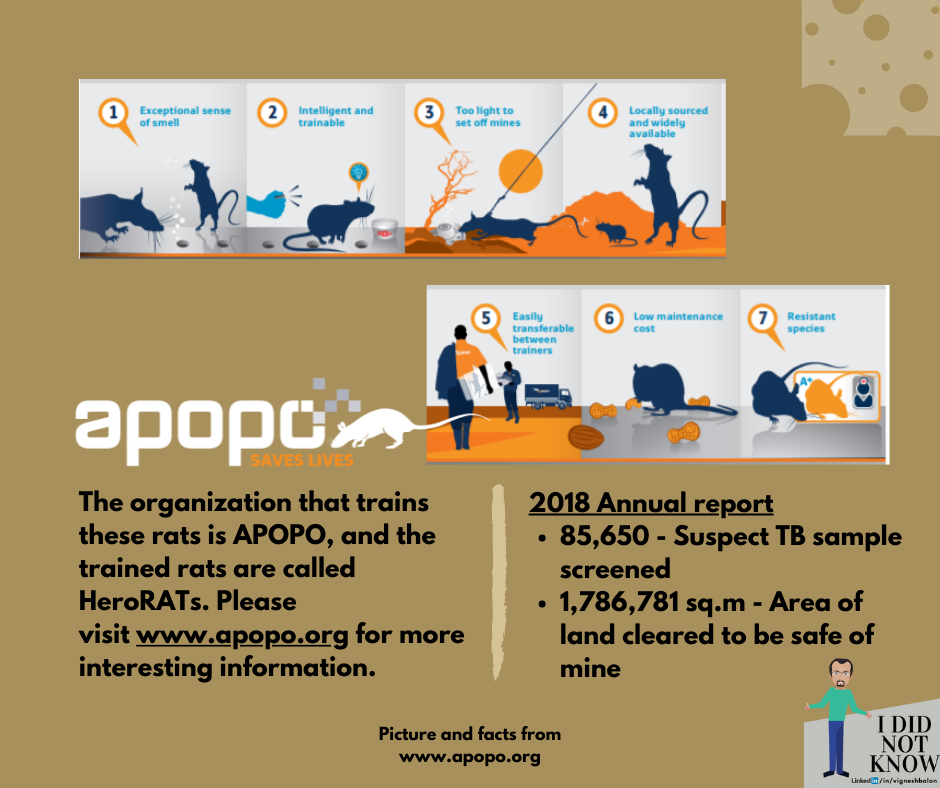 This week’s post and second in my ididnotknow series is an exciting story around how to solve crises by innovatively using a locally available resource. You will be surprised to know the amount of money and impact this indigenous approach has made. Especially when the resource we are talking about is a rat.