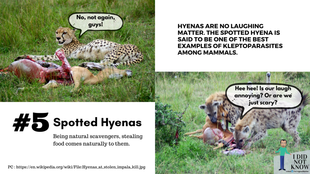 If the first post in my ididnotknow series that talks about the venus fly trap plant’s intelligence to detect live prey was not surprising enough. This post about kleptoparasites is sure going to. Kleptoparasites are animals that habitually steal their food from other species. Is it greed or sheer laziness or lack of skills? Each one may have their reasons. Read on to find out animals you would not have thought had it in them.